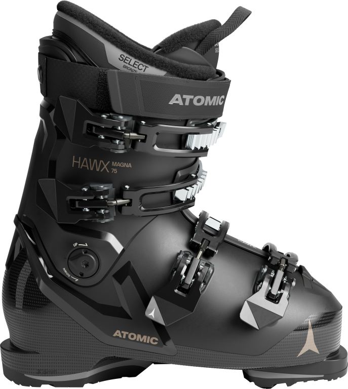 Atomic Hawx Magna 75 W je základní dámská lyžařská bota z all-mountain řady Hawx Magna a má široký skelet 102 mm. Tato sjezdová bota s flexí 75 je pohodlná a tolerantní. Má stejnou konstrukci Prolite jako modely Hawx Ultra W a Prime W, díky které je lehká a zároveň zesílená v klíčových zónách, což umožňuje dynamickou jízdu. Komín s adaptivním systémem přizpůsobení (AFS) je vybaven spoilerem, který lze vyjmout a zvětšit tak prostor uvnitř komínu, zatímco asymetricky tvarovaná, elastická přední část vnitřní botičky 3D Stretch Toe Box poskytuje více místa a pohodlí v oblasti palce. Technologie Energy Link na zadní straně boty vytváří pevné spojení a poskytuje lepší odezvu při lyžování. Tato lyžařská bota je určena pro lyžaře, kteří hledají širokou botu s nižší flexí. Díky ní bude váš den na lyžích lepší.